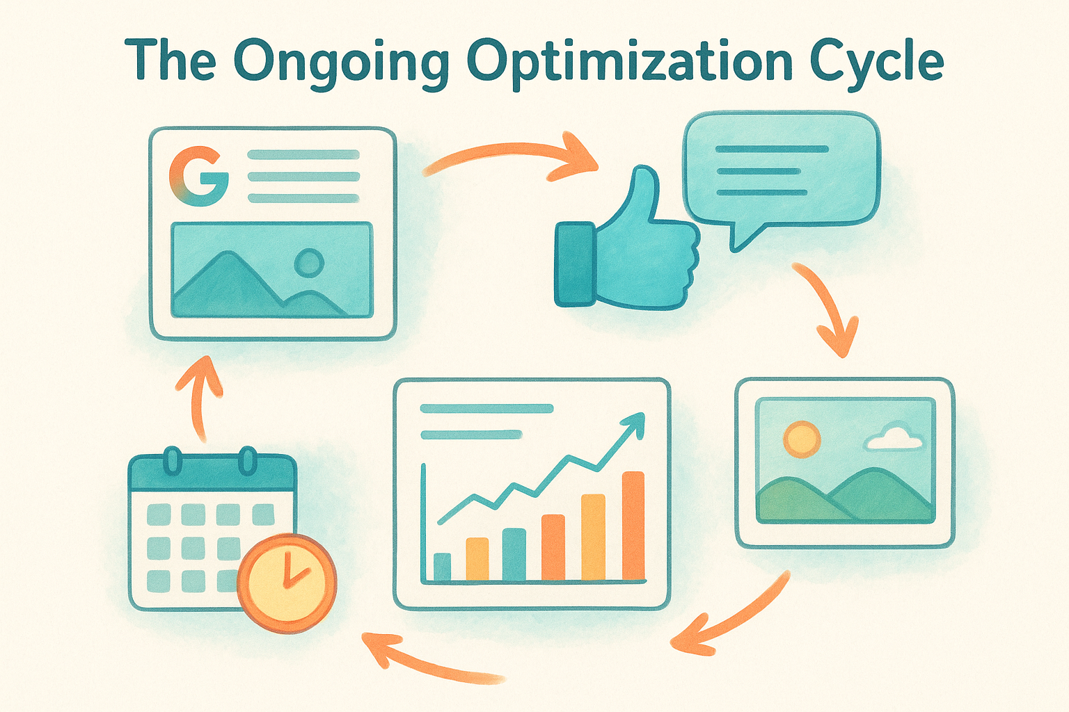After setup, the real work shifts to a monthly rhythm that keeps your profile active and competitive. Here is what that cycle typically looks like: